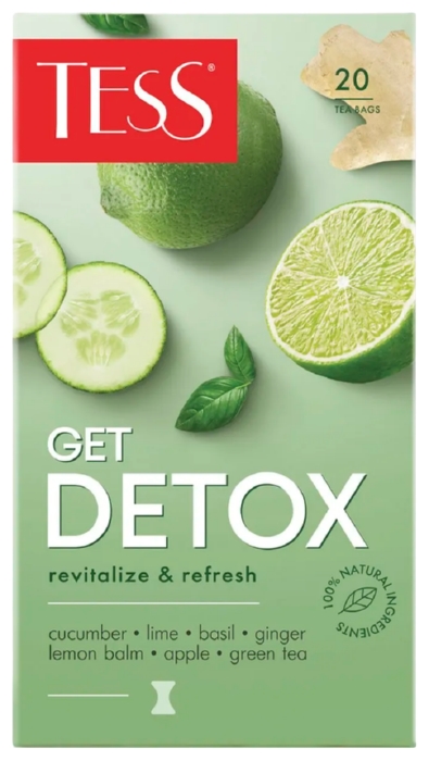 Даже идеальной форме нужна поддержка! Get DETOX от TESS - композиция на основе зеленого чая с ароматными травами и специями - дарит чудесное ощущение легкости, освежает и утоляет жажду.