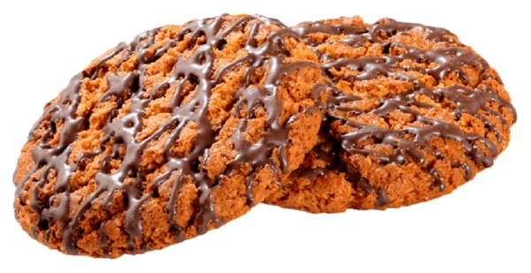 Овсяное печенье с карамелизированной структурой и ароматом корицы. Декорированное темной глазурью.