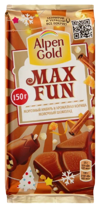 Шоколад АЛЬПЕН ГОЛД Макс Фан Морозный имбирь и ароматная корица молочный 150г