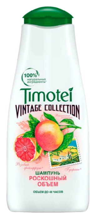 Шампунь Timotei Роскошный объем придаст Вашим волосам головокружительный, стойкий объем и здоровый вид. Шампунь Timotei содержит инновационный комплекс Botanik-З - специально подобранное сочетание: - 100% натуральных ингредиентов (экстракты); - витаминов В5‚ С, Е; - ухаживающих компонентов. Благодаря комплексу Botanik-З формула Timotei содержит еще больше питательных компонентов для жизненной силы и превосходного внешнего вида Ваших волос. Формула, обогащенная экстрактами семян гуараны и розового грейпфрута, обладает легкой текстурой, не утяжеляет волосы, придает им удивительную мягкость и объем до 48 часов.