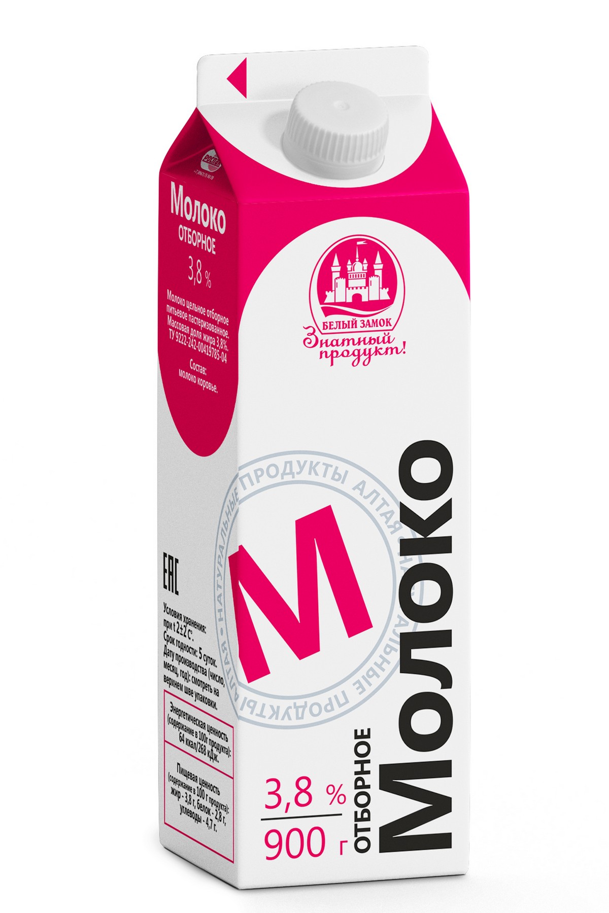 Молоко БЕЛЫЙ ЗАМОК цельное отборное бзмж 3.8% т/пак 900г