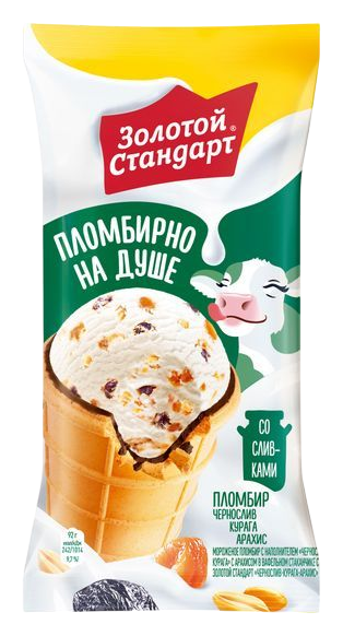 Мороженое ЗОЛОТОЙ СТАНДАРТ Пломбир чернослив курага арахис бзмж 92г