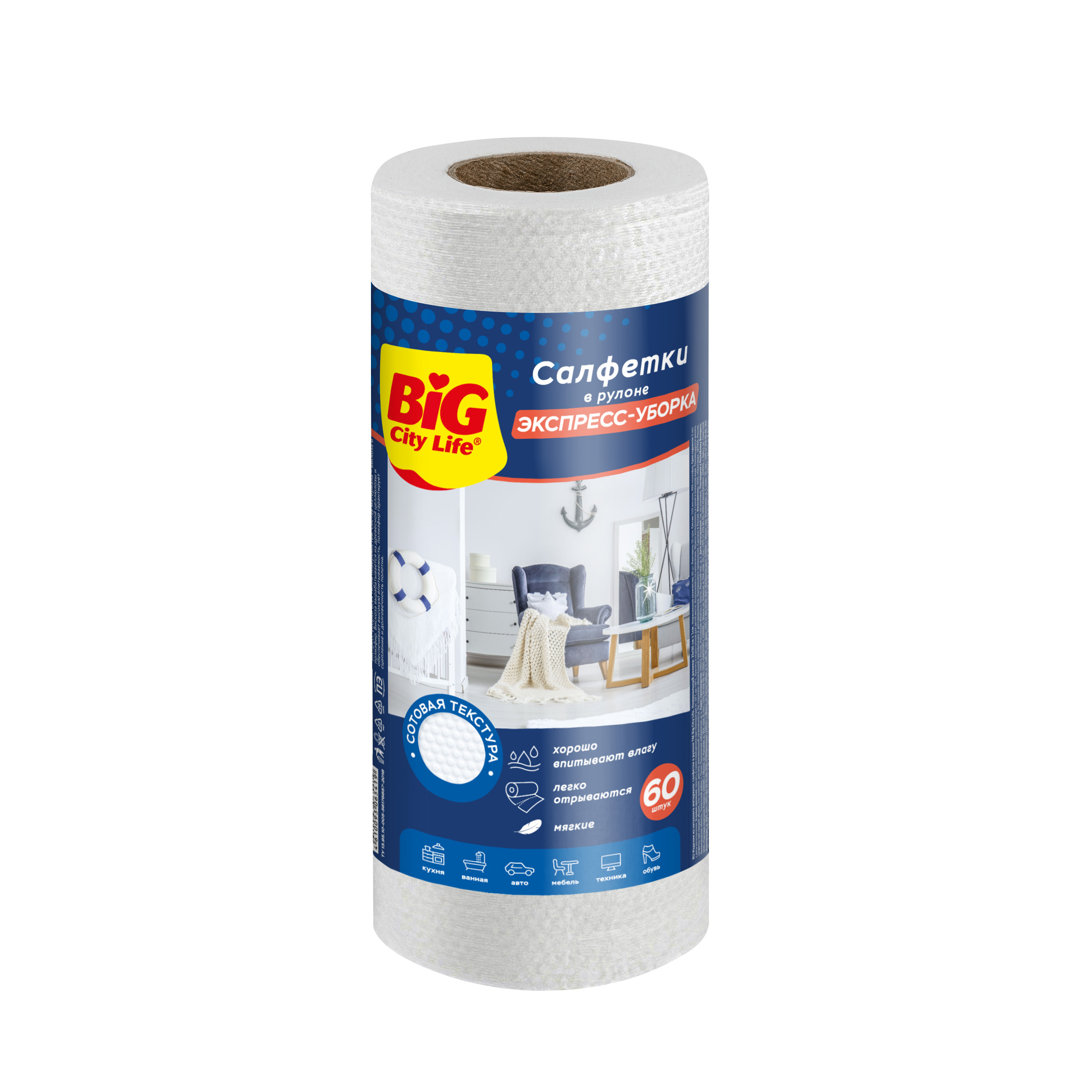 Салфетки вискозные БИГ СИТИ ЛАЙФ в рулоне 60шт